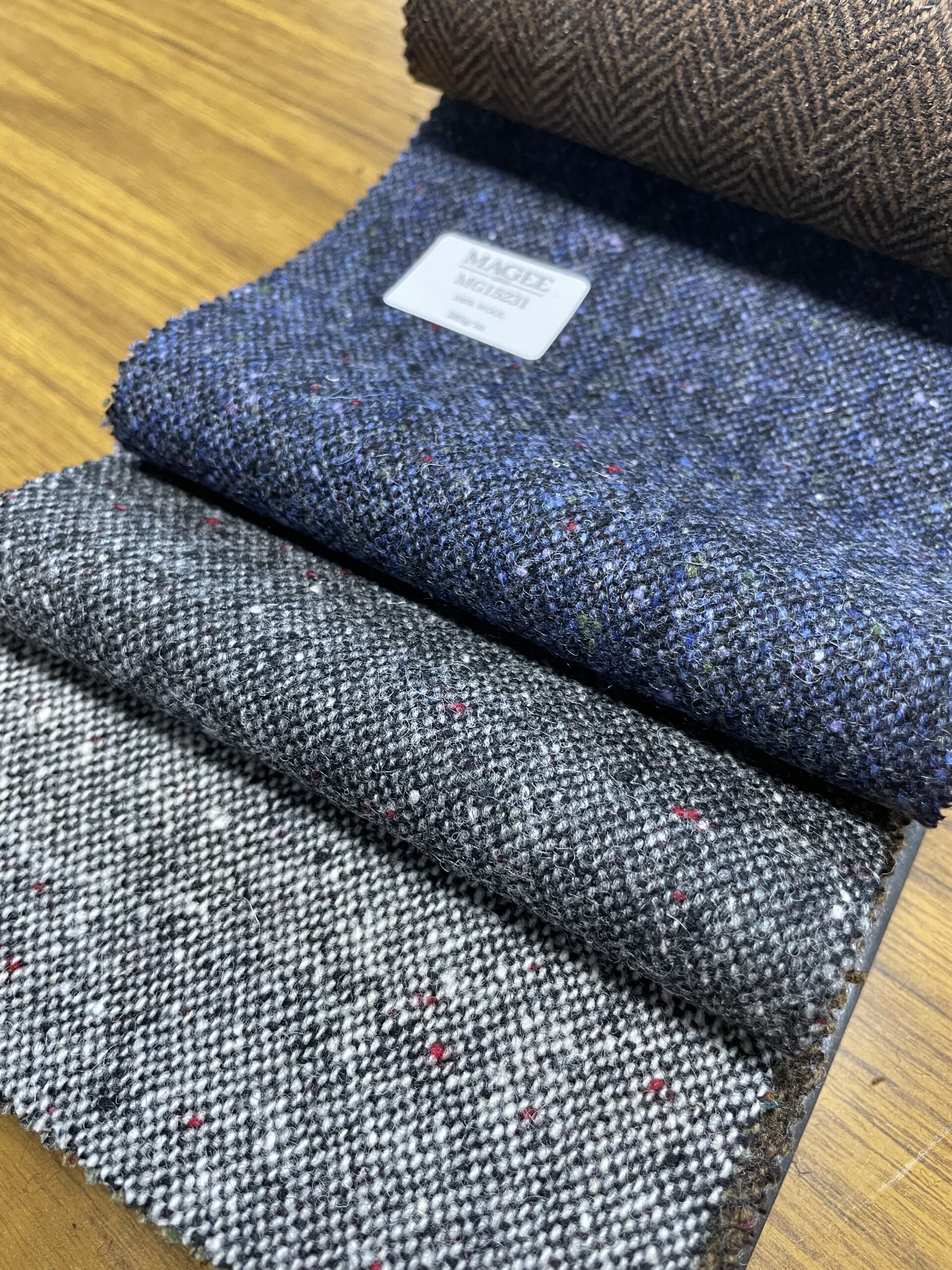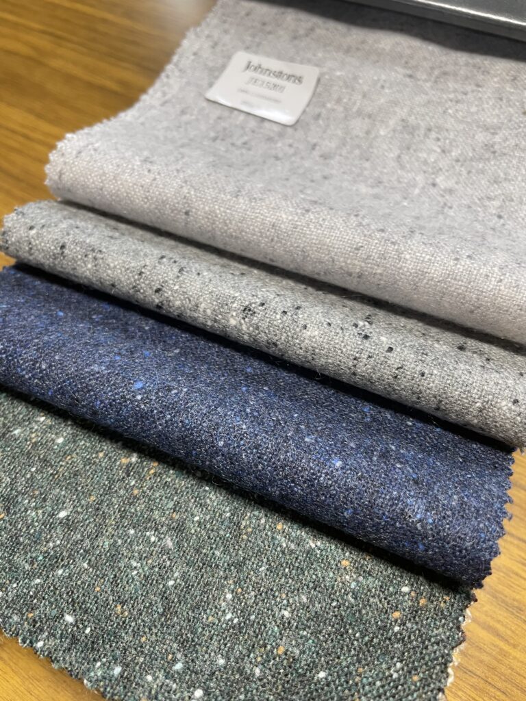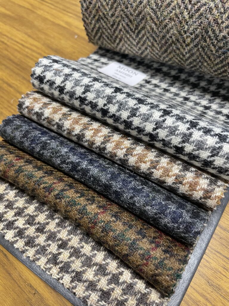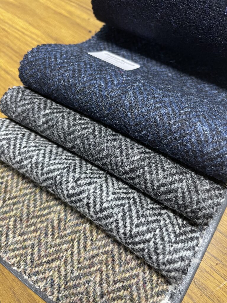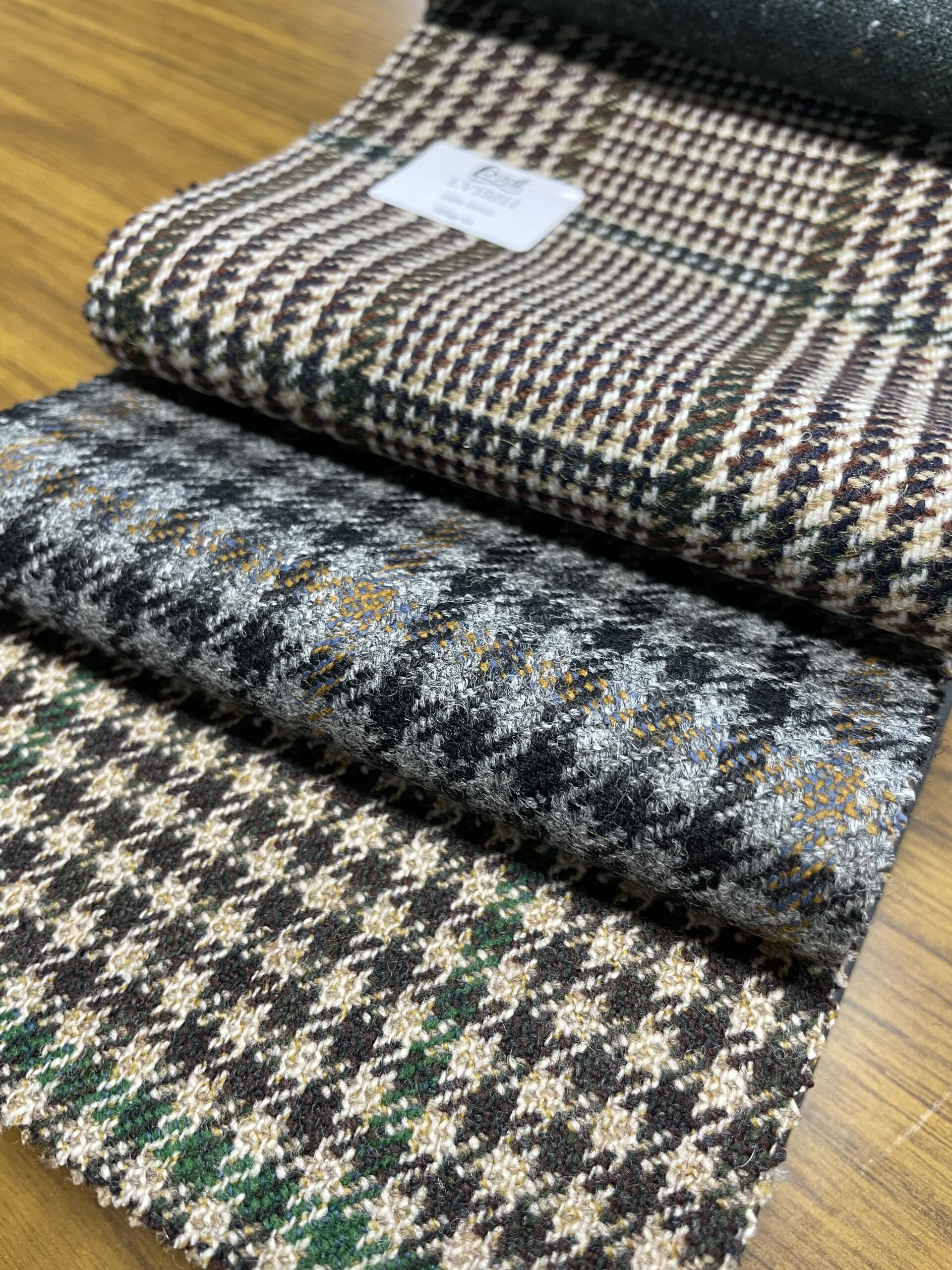 カシミア100%・ツイードといった秋冬の定番素材、ホームスパン・グレンチェック・ヘリンボーン・ウインドペーンチェックなどのお洒落デザインが満載。