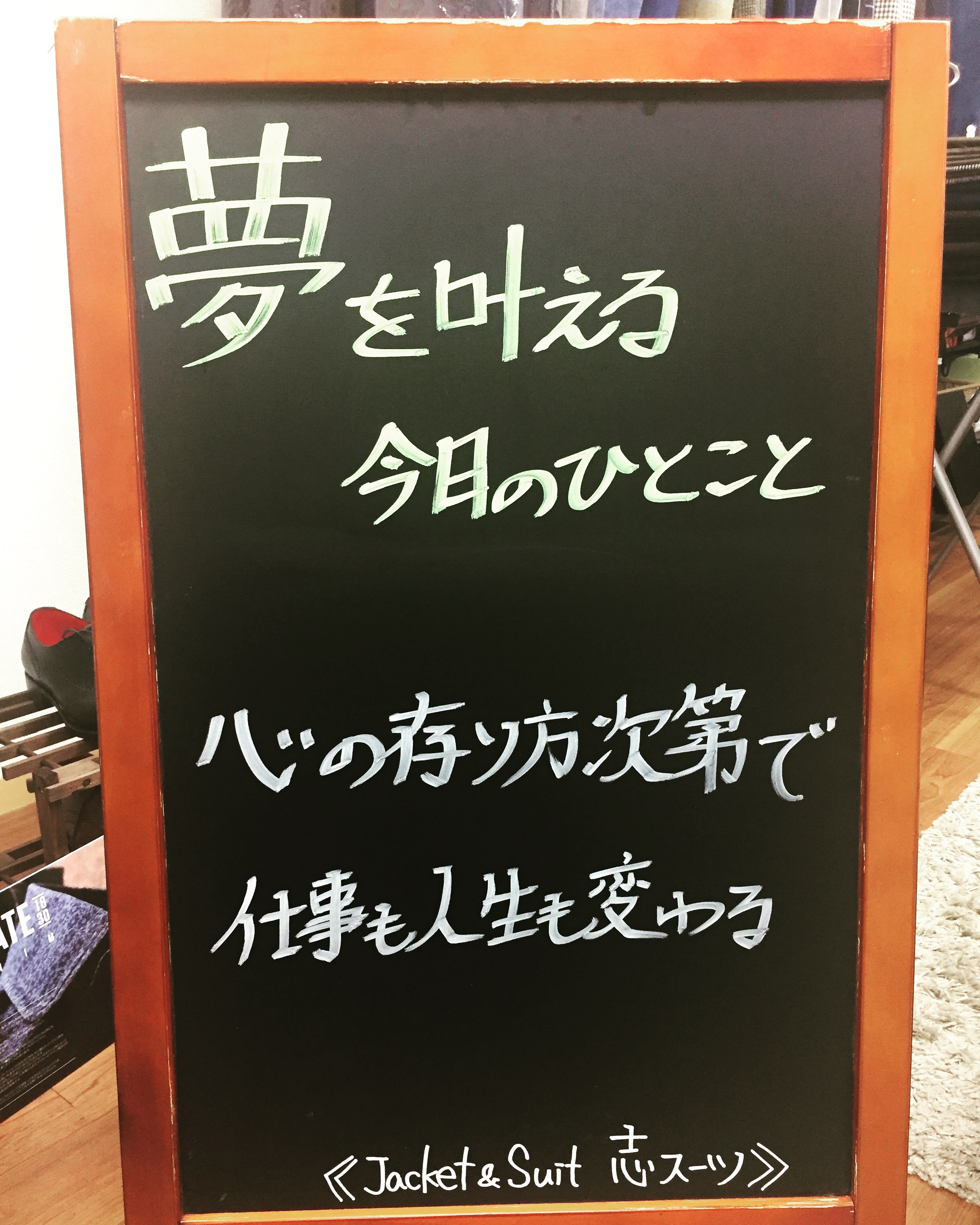 そこでお店の告知もそうですが、どうせなら道行く人が元気になる言葉を書き続けてみようと思いやっています。