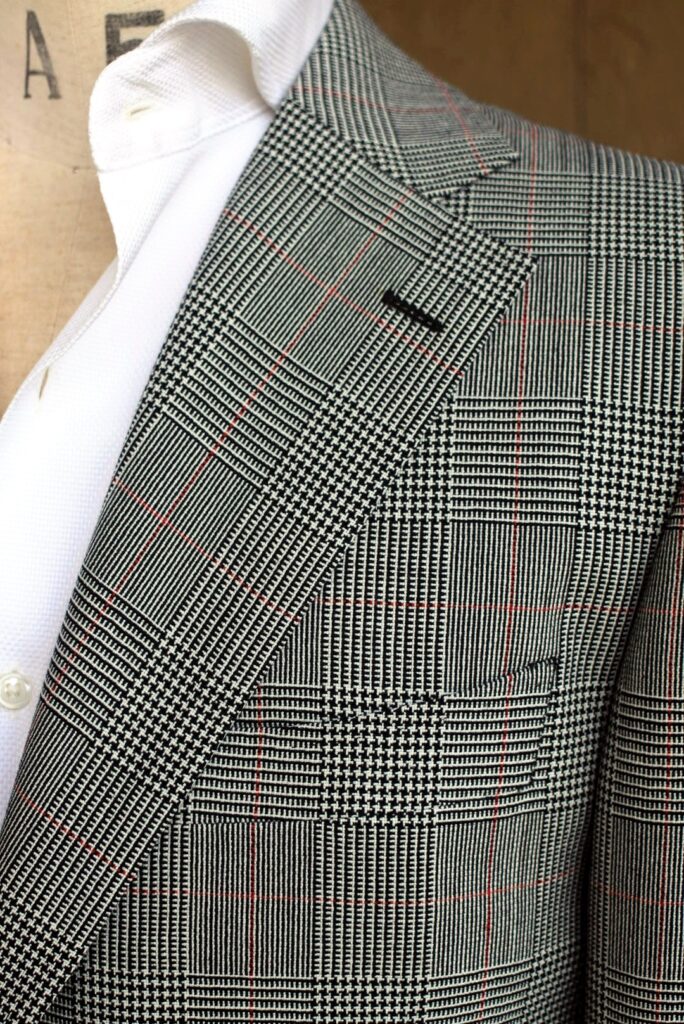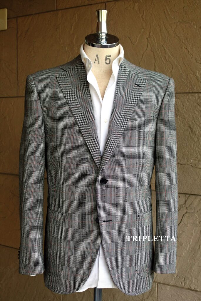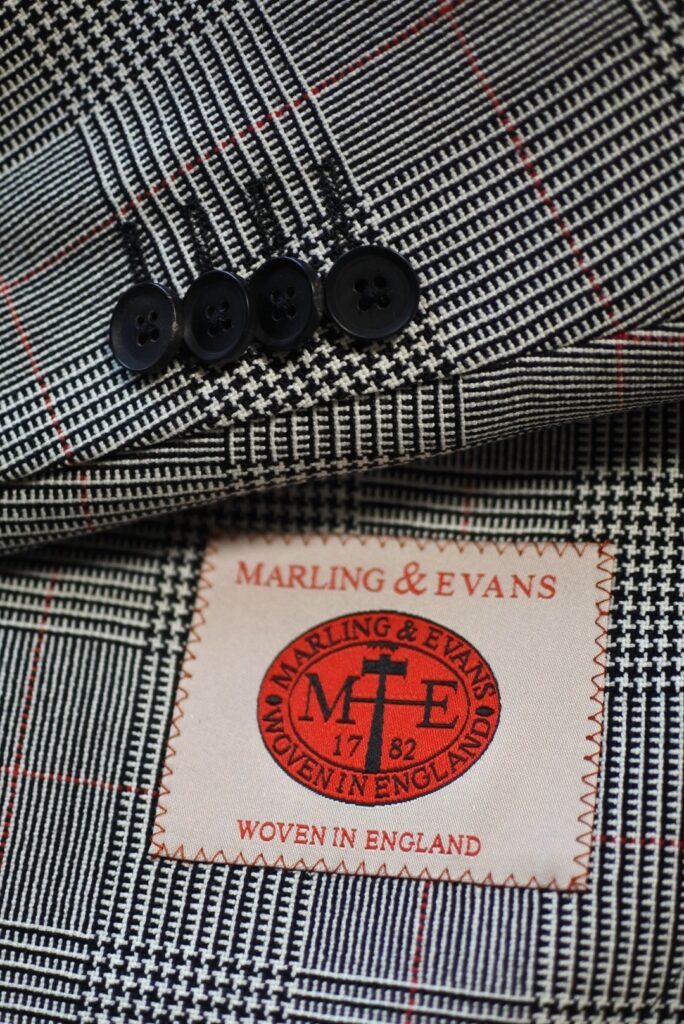 MARLING&EVANSの白黒グレンチェック生地を使用し、カジュアルながらも上質さを感じられる一着に仕立てました。