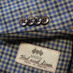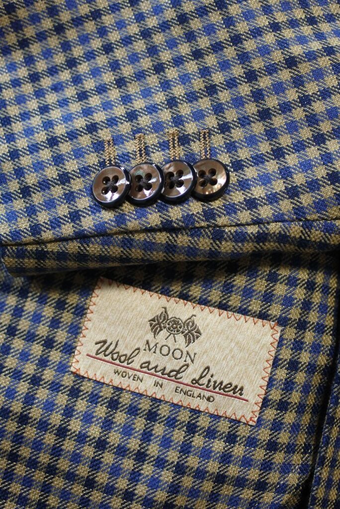 A.MOONのブラウンベースに黒×青のギンガムチェック生地を使用し、こなれ感のあるジャケットを仕立てました。
