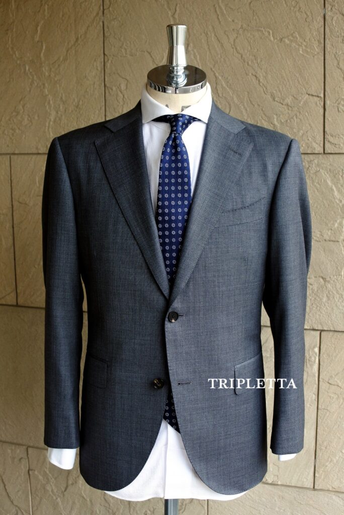 カルロバルベラのグレーシャークスキン生地を使用したスーツをお仕立てさせていただきました。