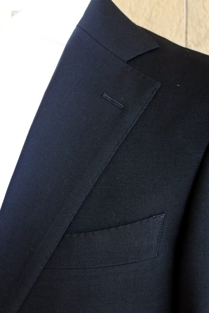 一般的なブラックスーツとは一線を画す、濁りのない上質な“真黒”がフォーマルシーンでの品格を際立たせてくれます。