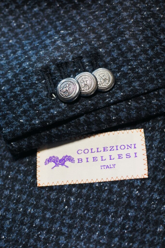 お選びいただいた生地は、イタリア「BIELLESSI」。ウールにシルクをブレンドし、上質な光沢としなやかなストレッチ性を兼ね備えた名品です。