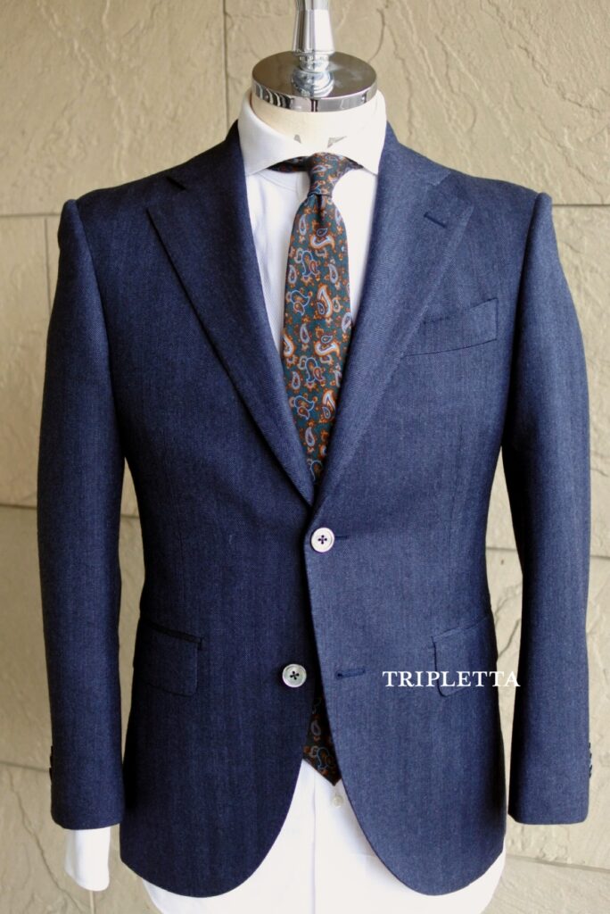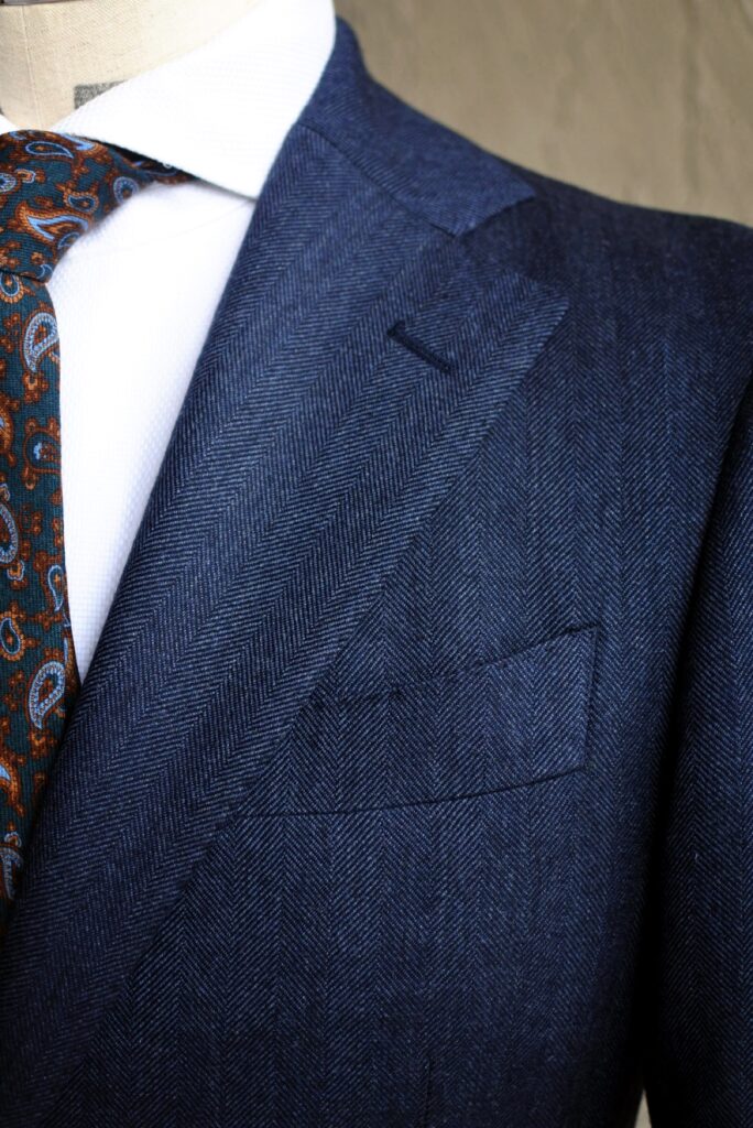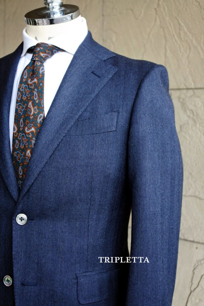 今回ご紹介するのは、William Halstead(ウィリアム・ハルステッド)の生地でお仕立てしたネイビー無地のシングルスリーピーススーツです。