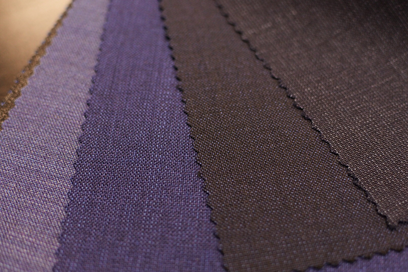 シルクによる高級感のある艶、リネンの涼しさと表情、ウールの機能性を兼ね合わせているのが特徴。