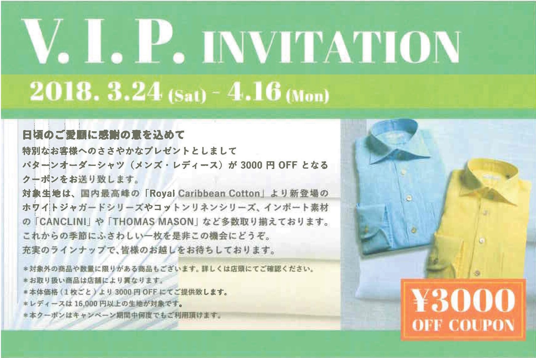 こんにちは! COCOROZASHI SUITの篠田です。 先日ご案内させていただいた通り、本日3月24日(土)~4月16日(月)までオーダーシャツフェアを開催しています。