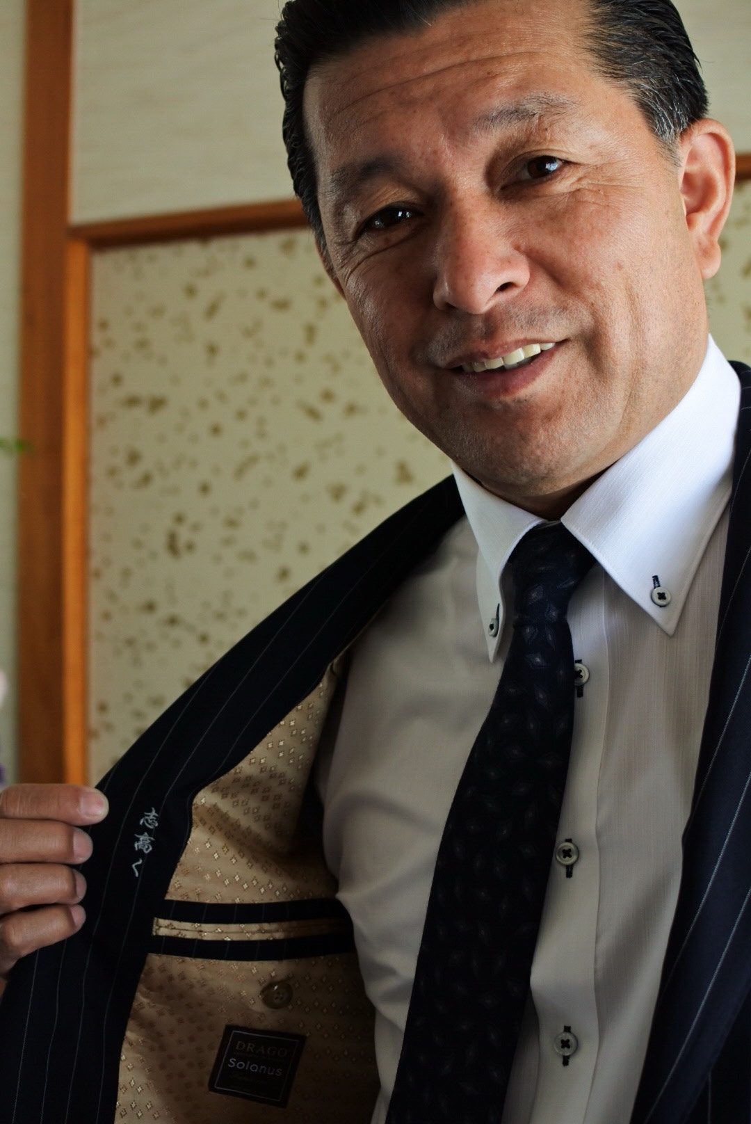 “仕事を通じて、人を育てる経営”を目指し、自らも勉強会やセミナーなどに積極参加されているT様。 トラックを華麗に乗りこなす【とらガール】(女性トラックドライバー)の活躍としても有名な会社を経営されています。 T様のキーワードは「安心・安全」と「成長」 得意先をはじめとした社会に向けた安心・安全という〝信頼感〟 会社や社員さんが上に上にと成長していく〝躍動感〟 この想いに一貫性を持たせるため、カラーはネイビー、デザインはハッキリとしたストライプで作らせていただいております。 また講師として話す機会も多い方なので、人前に出た時に映えるよう光沢のあるイタリア素材を採用しています。 胸に刺繍された【志高く】は、現状に満足せず、常に上を目指し負けても跳ね返されても何度でも突き進む。 そんなT様の生き方のお役に立てたら最高です!