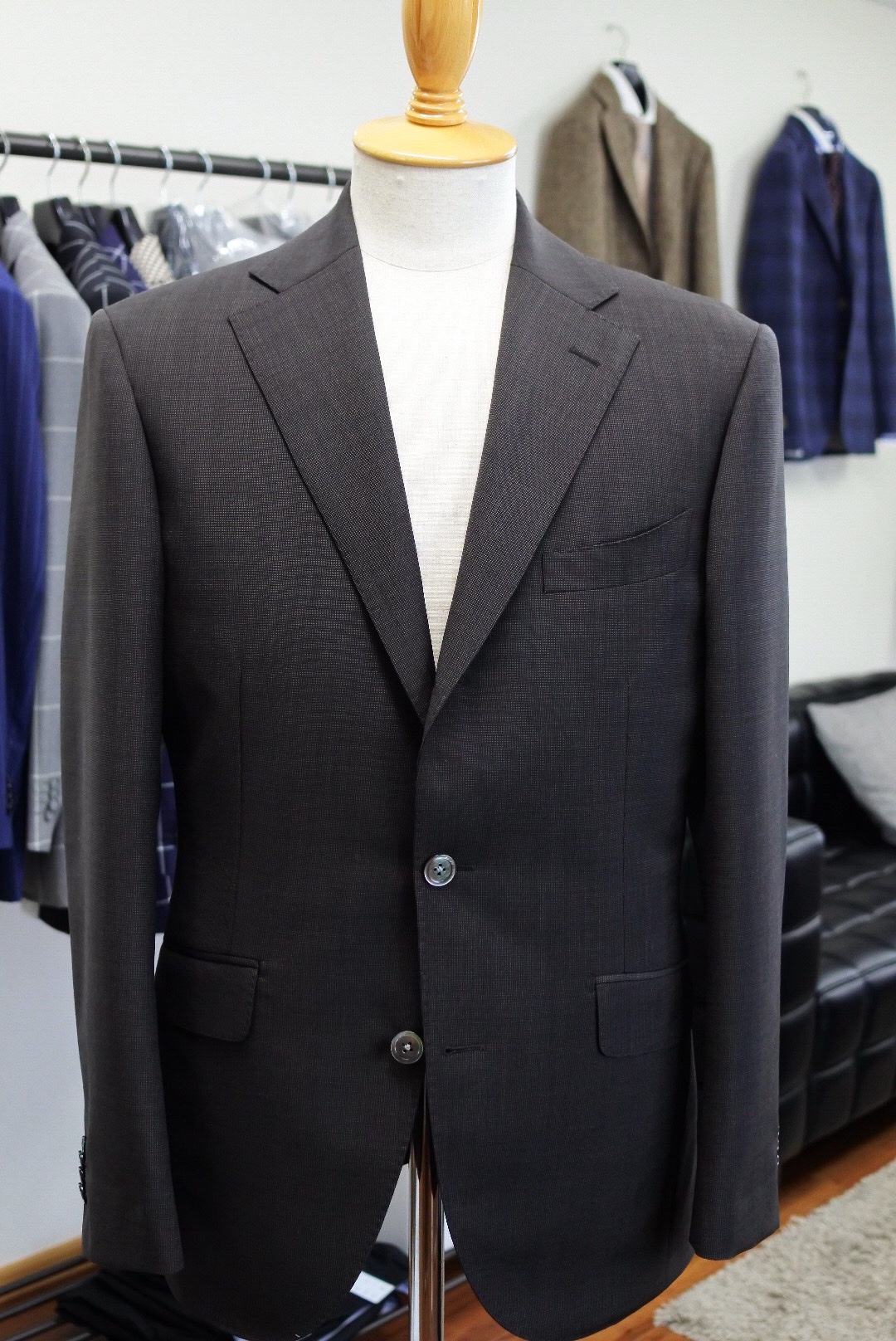 職業上、スーツはブラック・濃紺といったダーク系をお召しになられることが多いのですが、今回はダーク系でもブラウンので作らせていただきました。