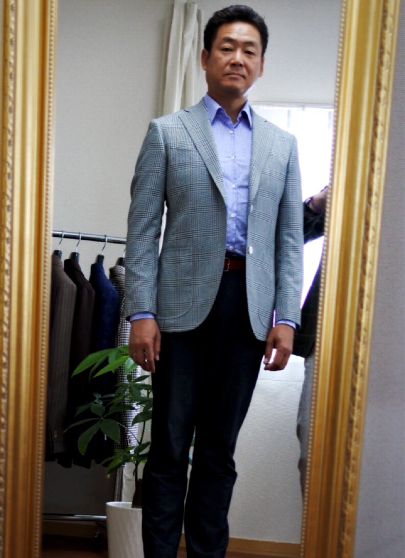 日々のビジネスではジャケパンスタイル中心の山本様、スーツのお仕立てもさせていただいたこともございますが最近は毎シーズンジャケットのオーダーをいただいております。