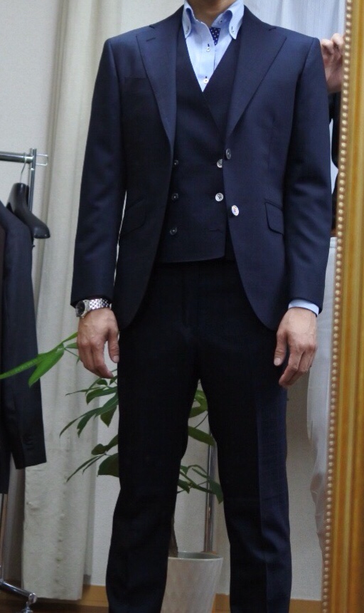 今回のダブルベスト付きスリーピースは夏場にはちょっと暑いですが、確実に誠実な印象を与えることができますので無理のない程度に夏場もご着用ください。