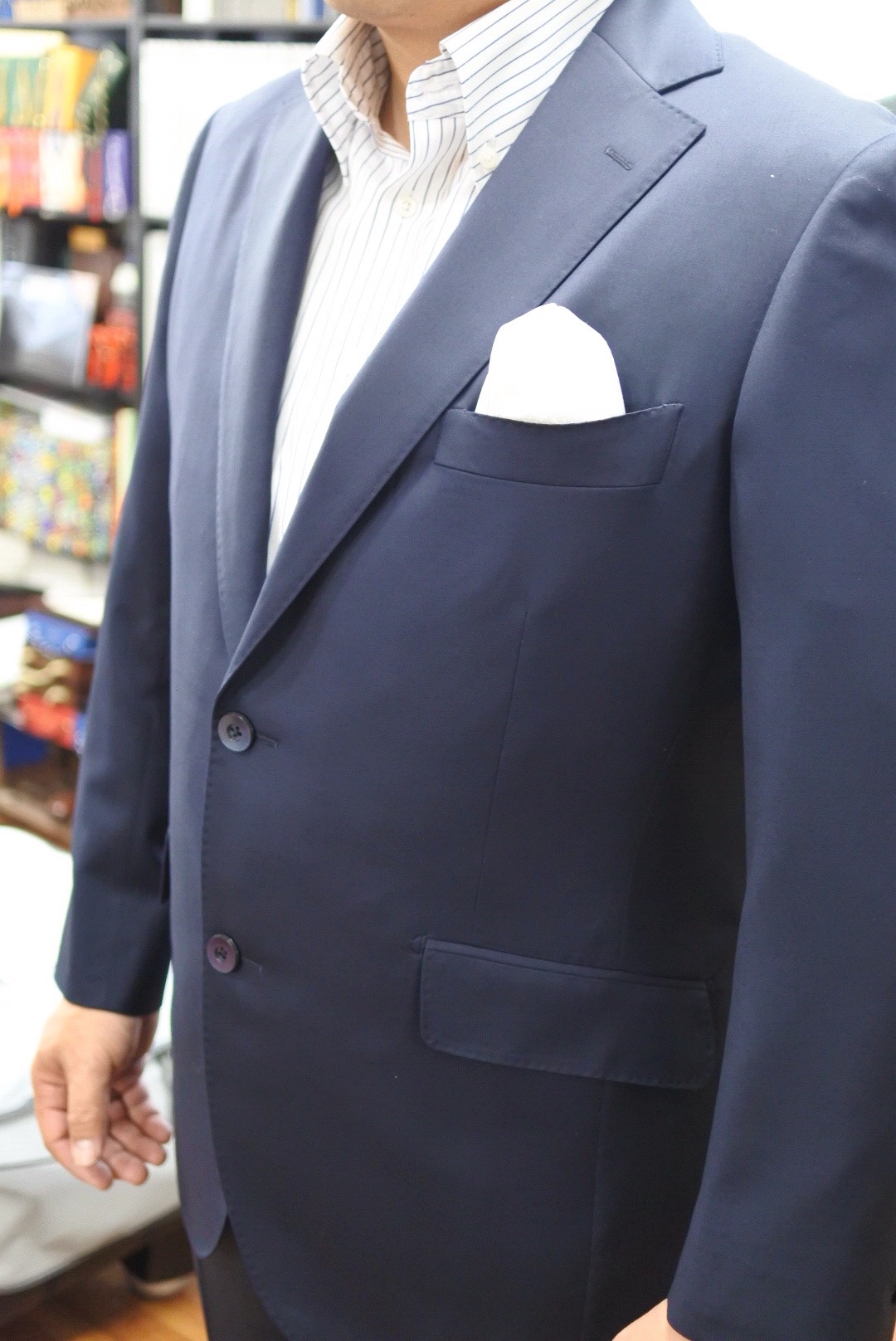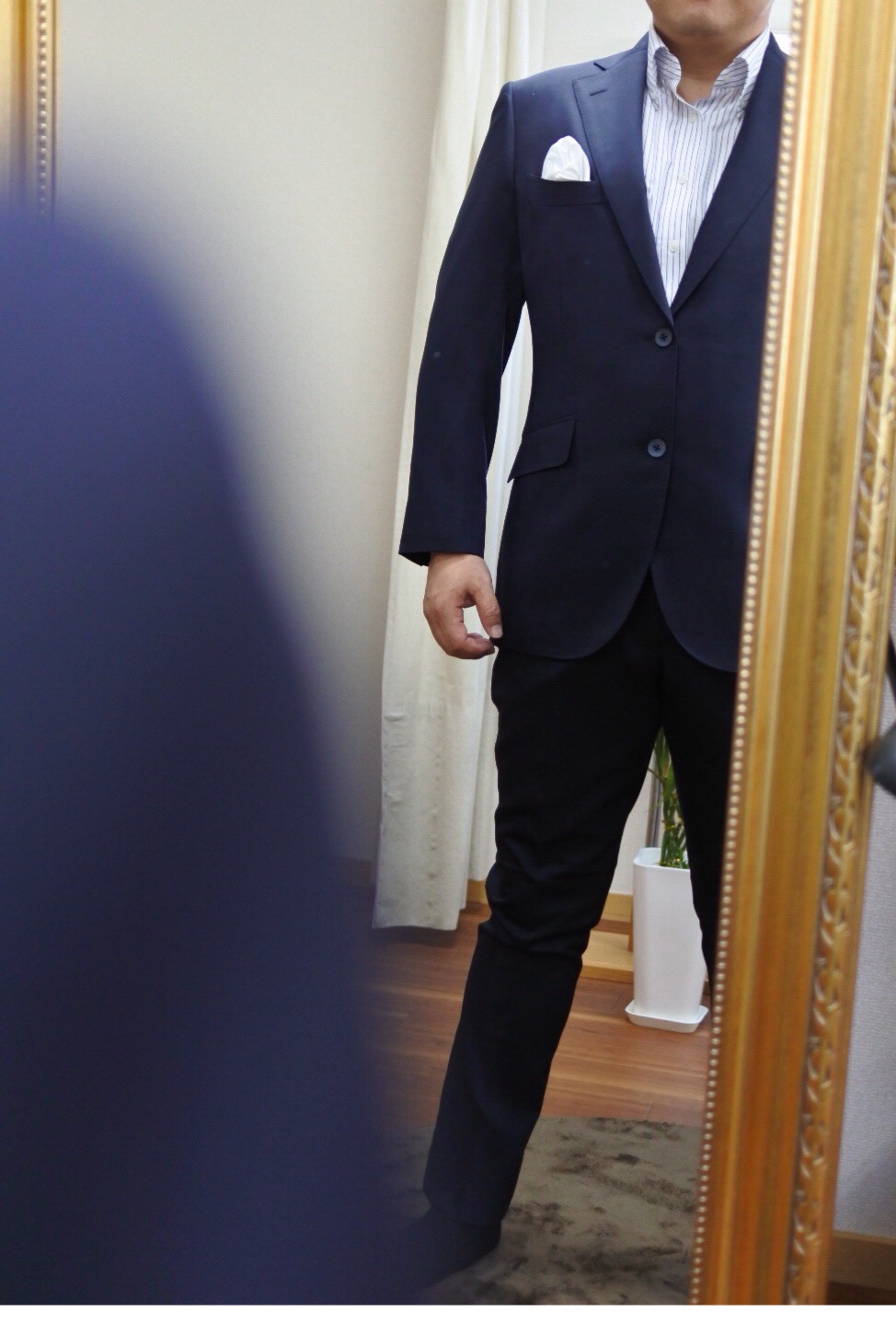 普段の仕事は出張や現場に出ることも多く比較的ゆったり目のスーツをお召しになられておりますが、今回のオーダーではお客様との商談や交渉時、会合や勉強会などキチンとした装いが必要な時に着用する目的で作っております。