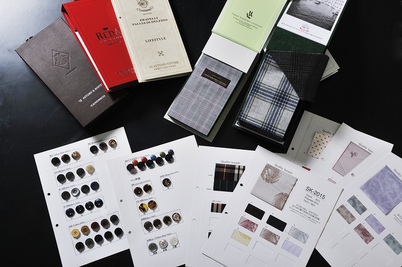 ※イタリア・英国を中心にした豊富な生地から、お客様の体型や顔立ちなどを考慮しご提案できます