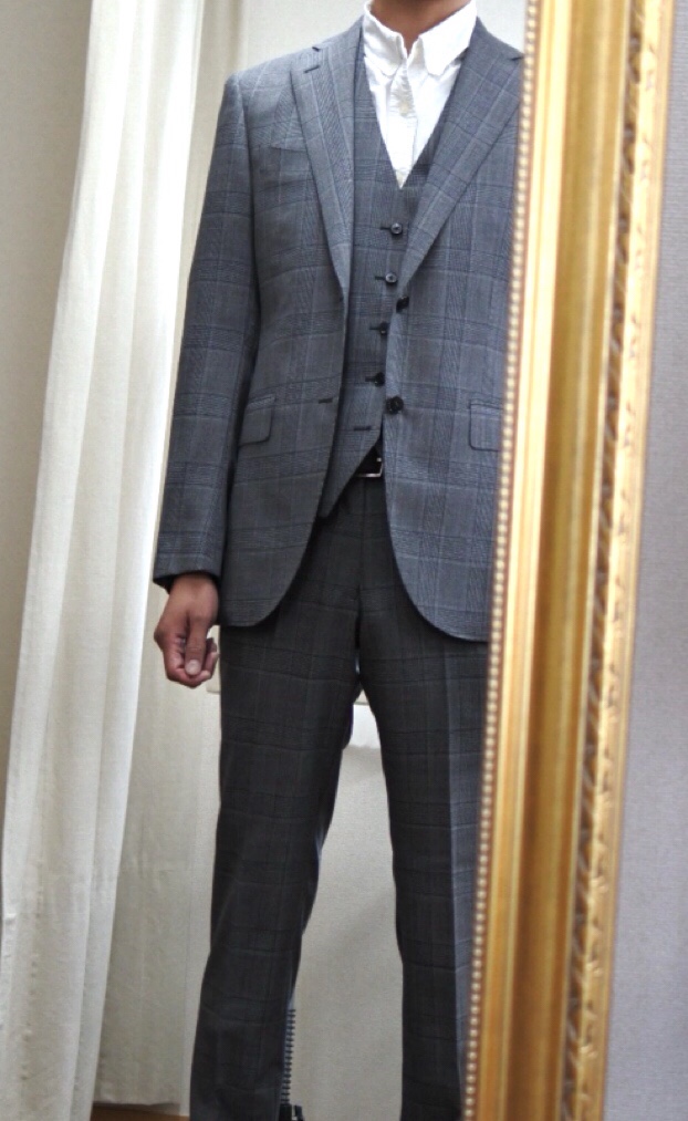 高身長でスリムさらに手足が長いお客様、既製服ではどうしてもオーバーサイズを選らばなくてはならないのがお悩みとのこと。
