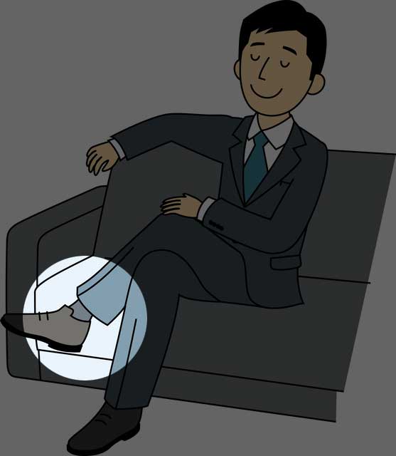 濃紺スーツにホワイトシャツ、ネイビーネクタイに黒のストレートチップ、スーツはジャストサイズで颯爽と席に付きカッコよく足を組んだ瞬間、垂れた靴下とスーツの隙間から素肌が見えしかもすね毛まで出ている・・・・・・(-_-;)