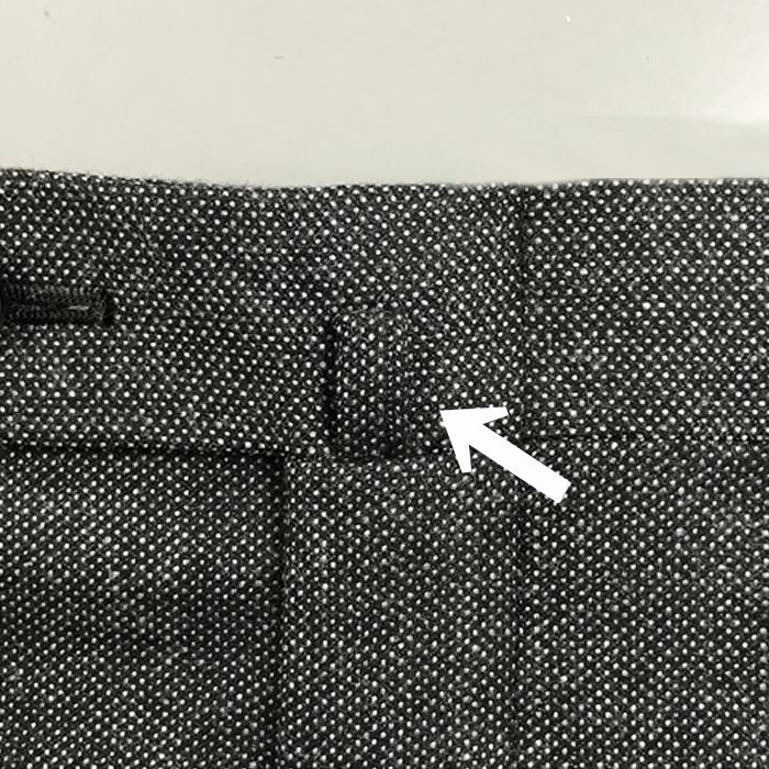 このループにベルトのピンを差し込んでおけば、股上浅いパンツを履いた際に出やすいフロント部分の下がりを回避することができます。