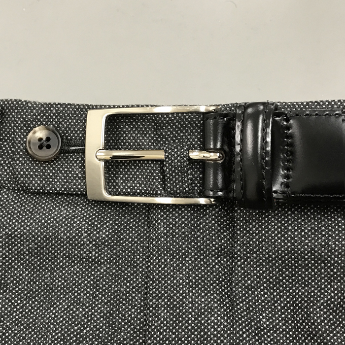 パンツは横からのシルエットを注目されがちですが、案外正面から見た時にベルトが正しい位置に収まっているでより一層キレイなパンツスタイルを得ることができます。