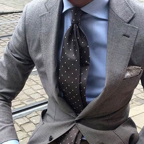 グレースーツの胸元には是非シンプルな白のポケットチーフをおすすめ。