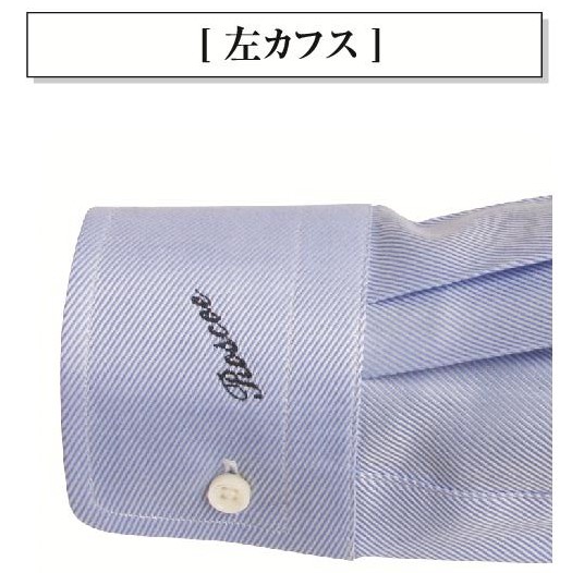 素材、サイズ、衿型、カフス型などオリジナルで作る上でネームやイニシャルを刺繍をされるお客様も多数いらっしゃいます。