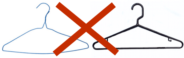 クリーニング後は必ずスーツ用ハンガーに変えること