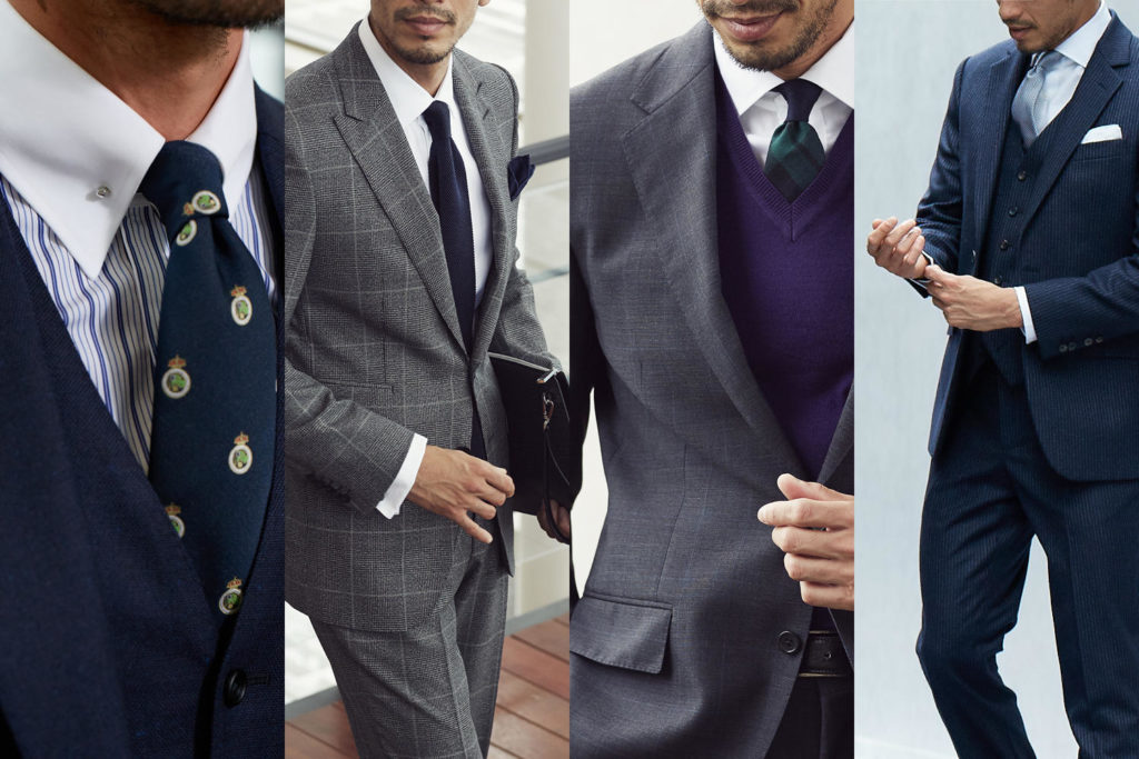 英国調スーツの特徴は〝カチッとした男らしさ〟〝ベーシックで伝統的な色柄〟が挙げられます。