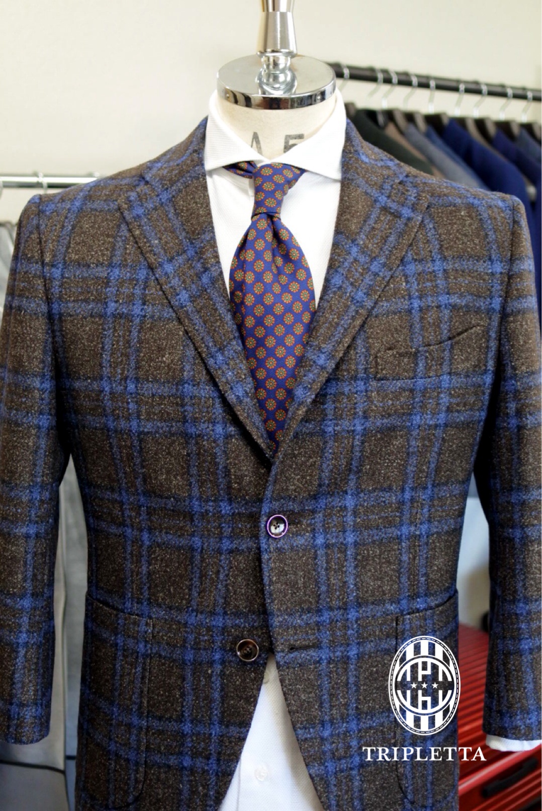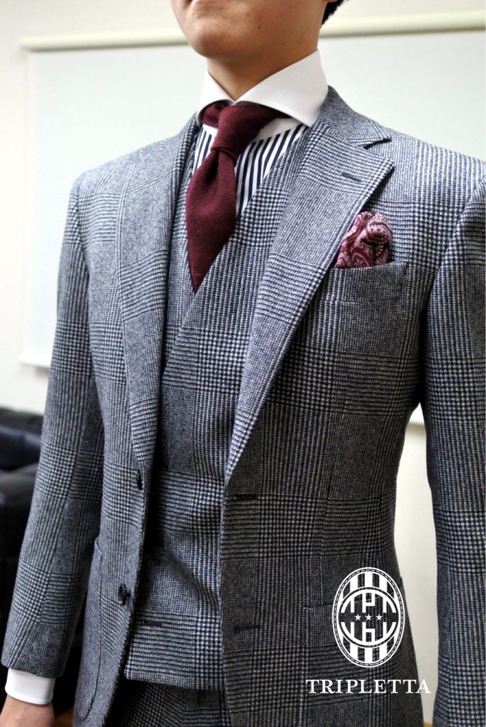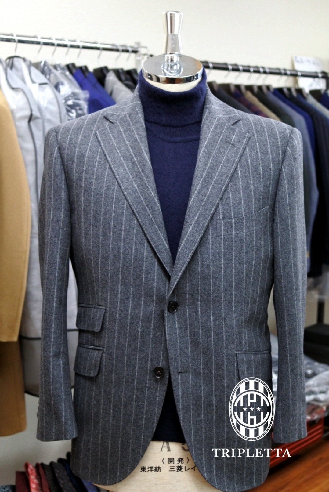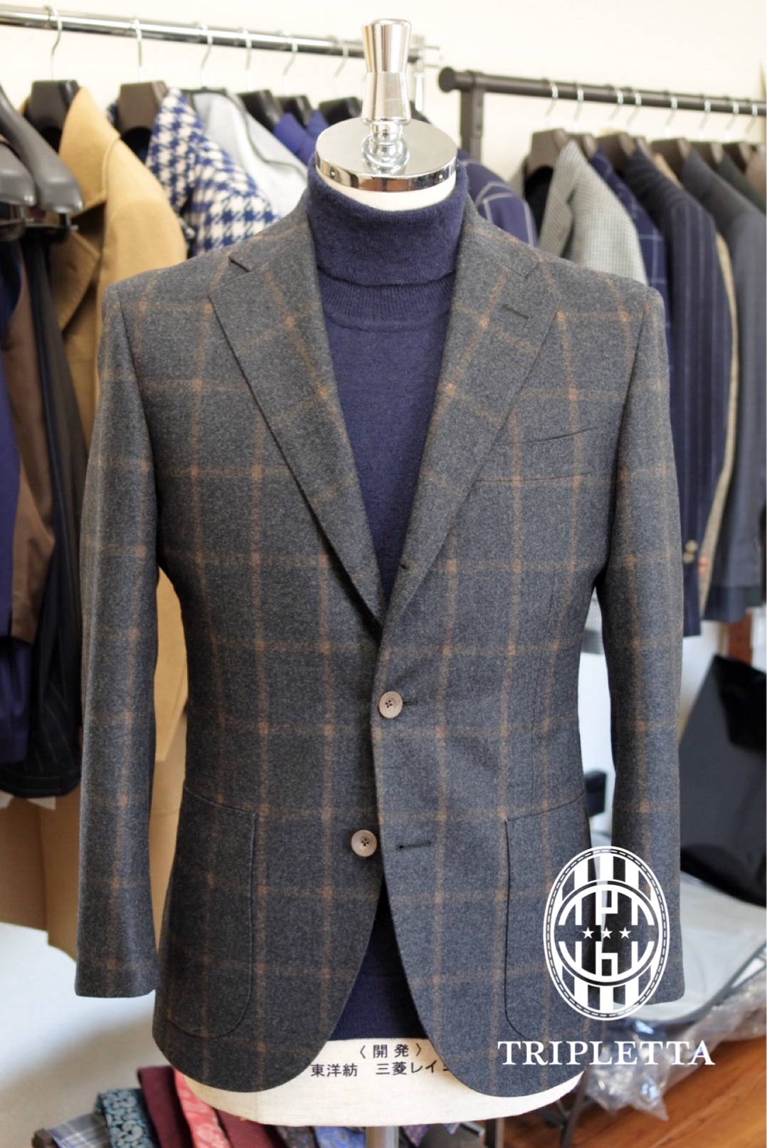 当店でフランネルを仕立てる場合、できるだけ着回し効果を高められるようジャケット・パンツを別々に組み合わせられるようセットアップスタイルをご提案するケースが多くなります。