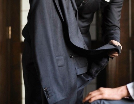 スーツは重厚感・威厳・誠実さといった少し硬めの印象に重きをおくため、ジャケットの着丈はヒップを2/3は隠すくらいの長さが適しています。