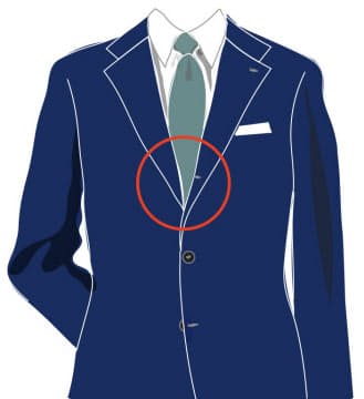 しかし一昔前に流行した3つボタンは先ほどのように一番上のボタンが返っていないタイプは一番上と二番目のボタンを留めるのが正解です。