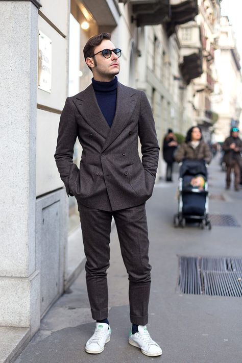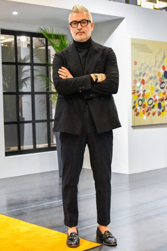 タートルネックの定番はブラックだけでなくネイビー・グレー・ブラウン・ベージュ・ホワイトなどがあり、着用するシーンを考えてカラーを変えていければ問題ありませんが、次に重要になってくるのが一体どんな素材のスーツを合わせるかが挙がってきます。