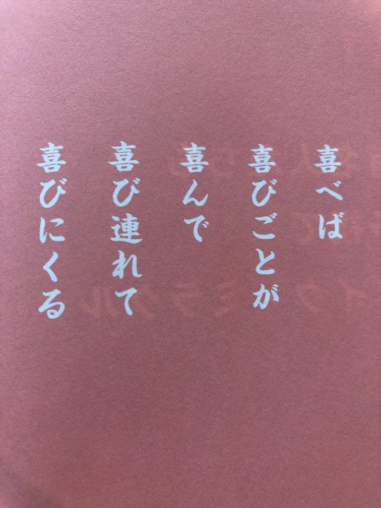 『喜べば、喜び事が、喜んで、喜び連れて、喜びに来る』