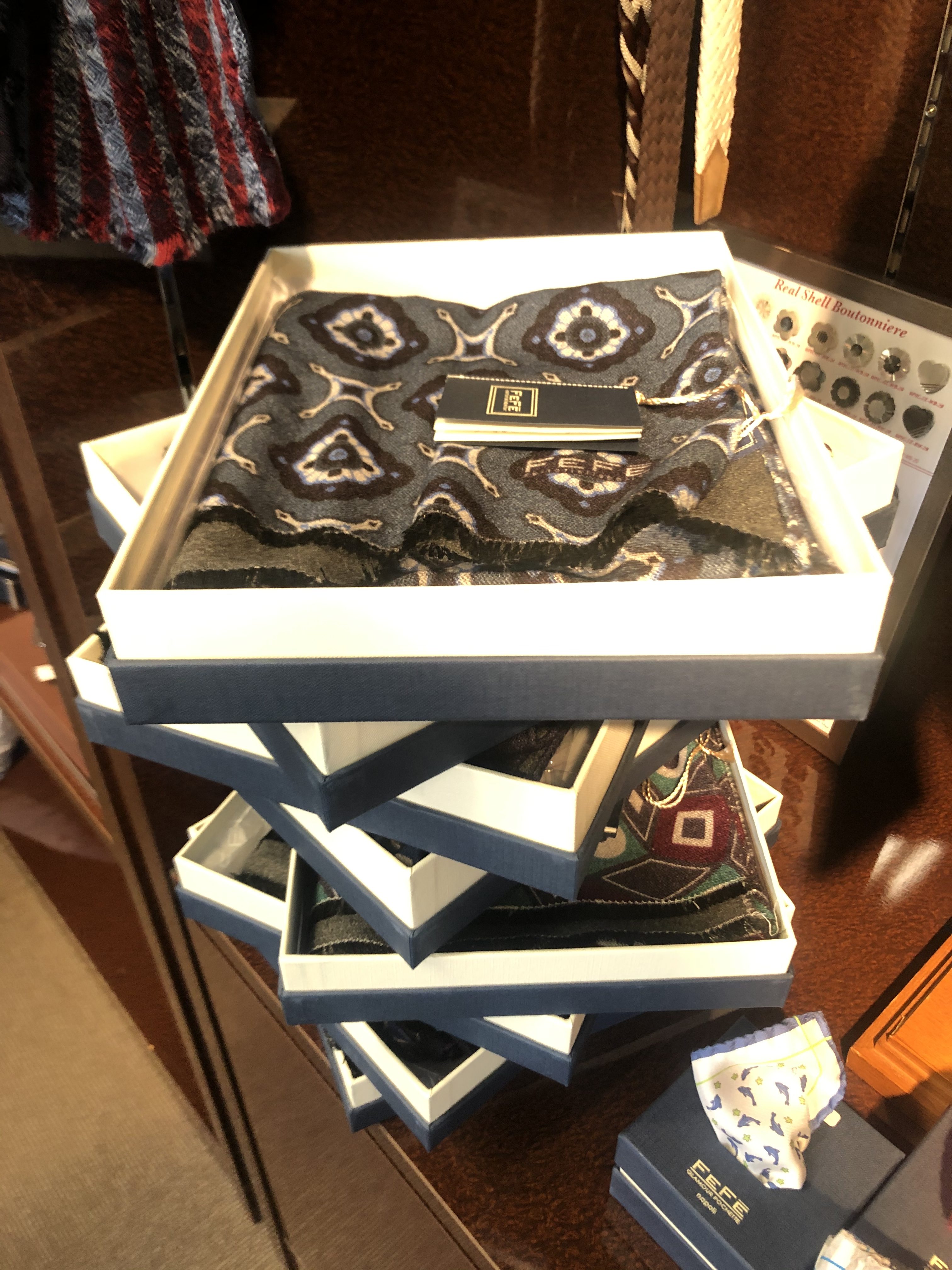 夏らしいリネン・シアサッカー・チーフ・ベルト・小物など色々あります。