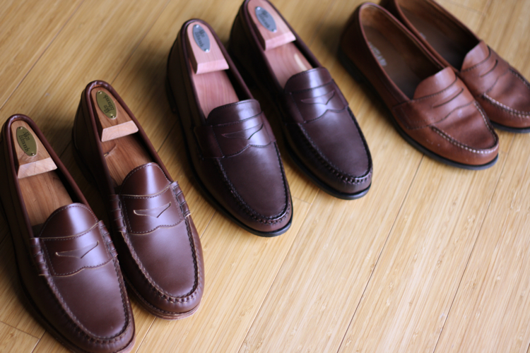 靴ひもを結ぶ必要のない靴(スリッポン、slip-on)で、気楽に脱いだり履いたり出来る。紐がなく革の弾力を利用して足にフィットさせる構造から、一般的には小さめのサイズを選んで履き慣らしていくシューズです。ローファーはサイズ感がとても難しく、大きいのは踵が抜けてしまいます、足の甲で支えるには少し小さいのを選ぶので最初は少し痛く感じますが、履き続けることで足に馴染み痛みは消えていきます。